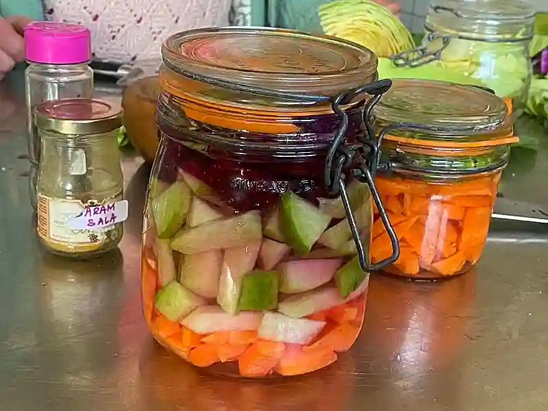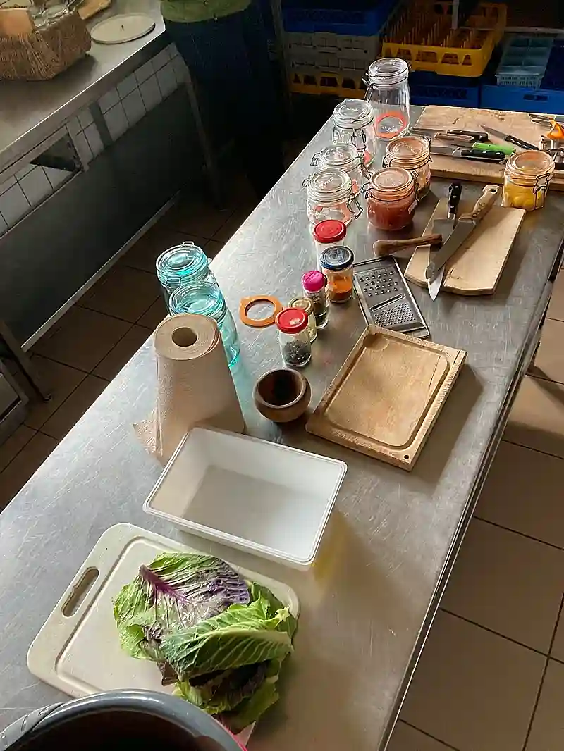 Nous étions 15 personnes a apprendre cette méthode traditionnelle et ancienne de conservation des légumes et des fruits, par exemple la choucroute.